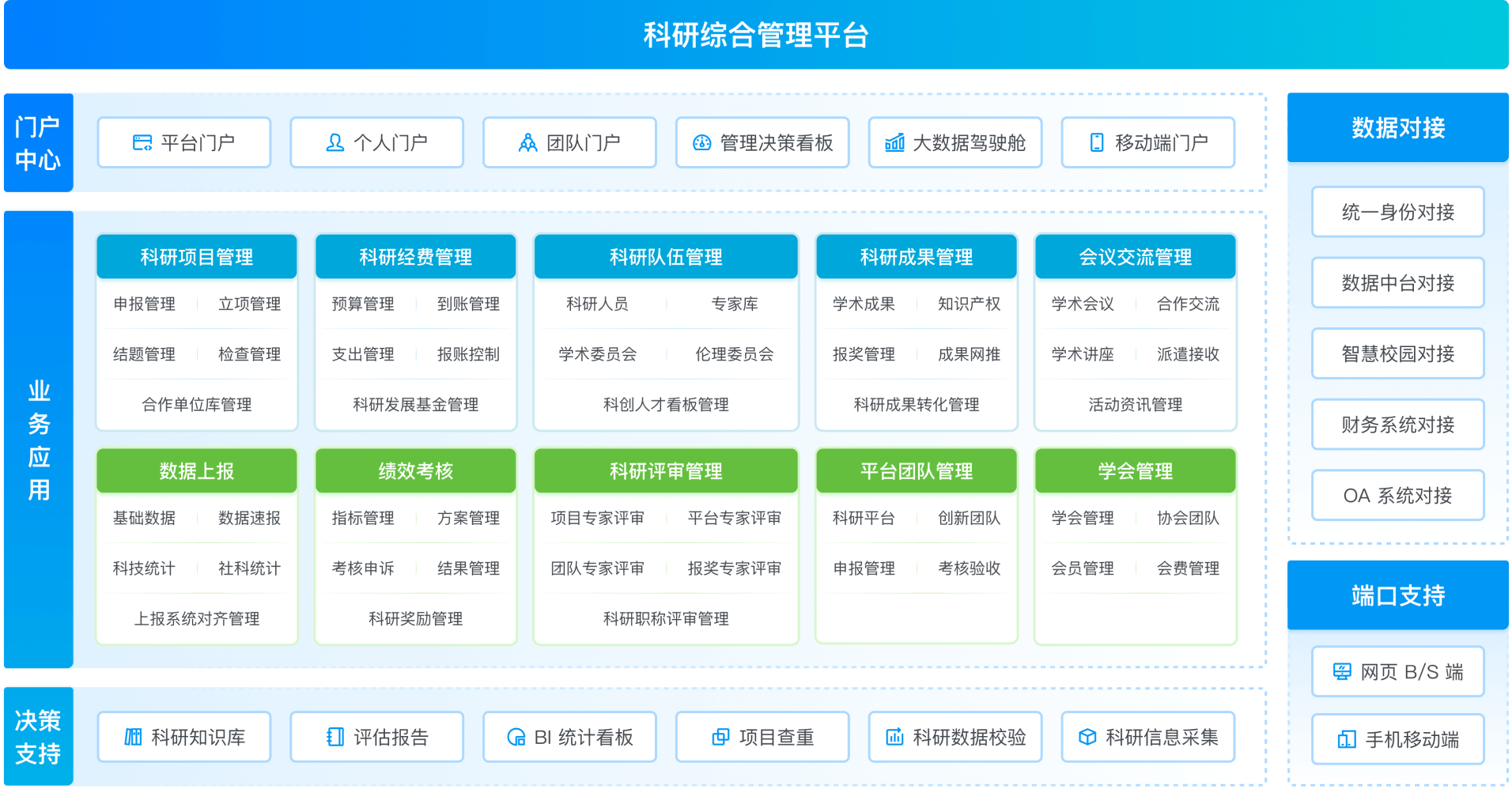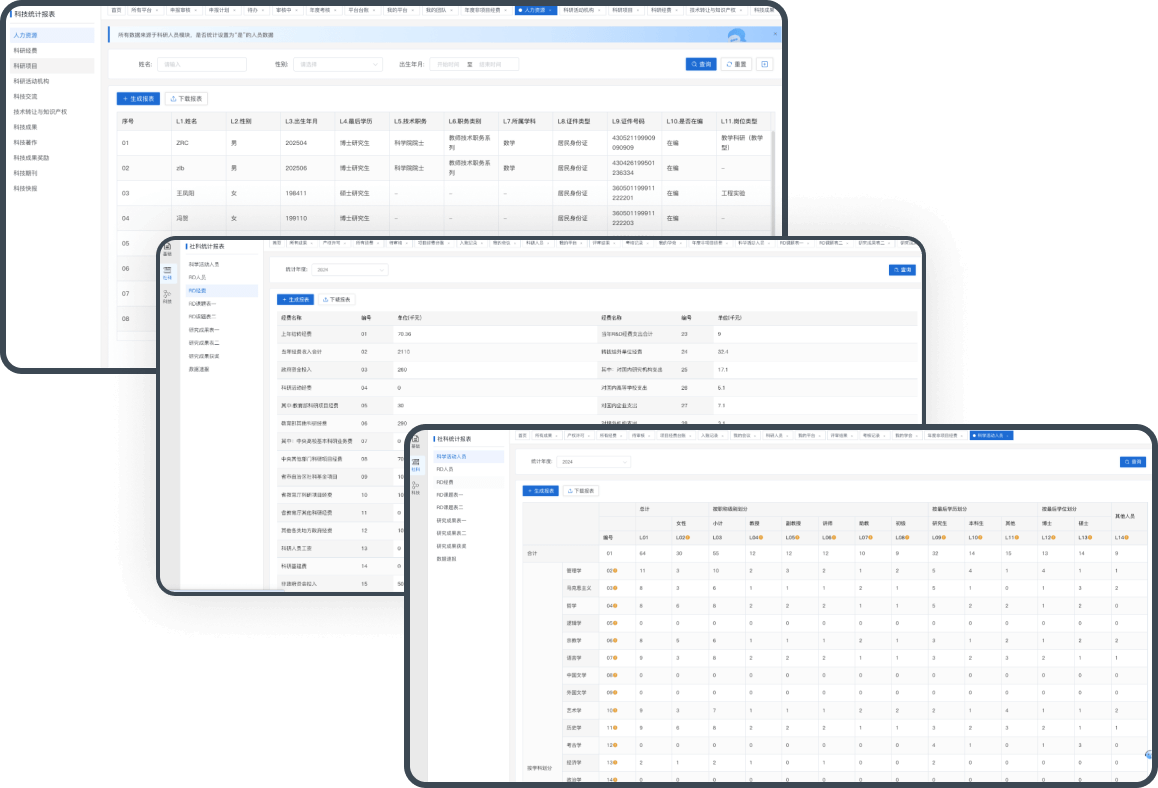 提供完整的社科统计和科技统计报表,系统数据⾃动治理和转化,⼀键⽣成完整的教育部数据上报数据表和⾼校智慧⼤脑数据表,轻松完成数据统计⼯作,⼤量释放科研⾏政管理⼈员效能。