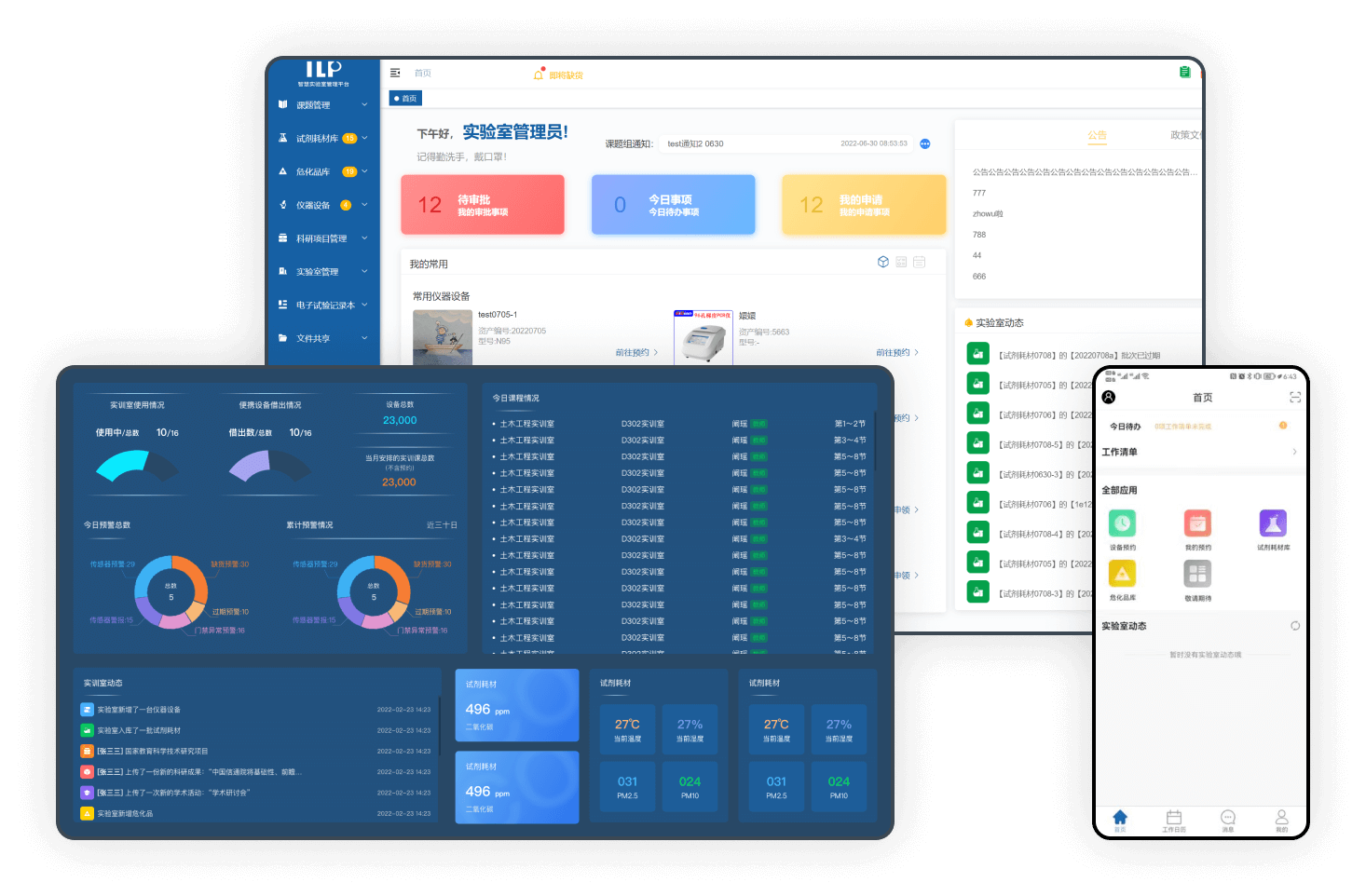 深度结合数字化和iOT技术对科研实验室内的“⼈”、“机”、“料”、“法”、“环”进⾏有机整合管理,规范实验室管理流程和试验⾏为操作,降低实验室运⾏成本和提升实验室内部管理效率,同时建⽴科研数据内部闭环,全⽅位助⼒实验室数字化转型。