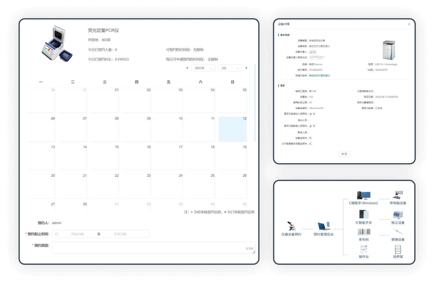 在传统的仪器设备线上共享预约基础之上,创新的结合PC+Web+Client的形式,搭建起实验室内部数据库,形成形成科研数据内部管理闭环,在解决预约冲突和使⽤效率的问题上,⼤幅度提升实验室内部的数据安全性和可溯性。