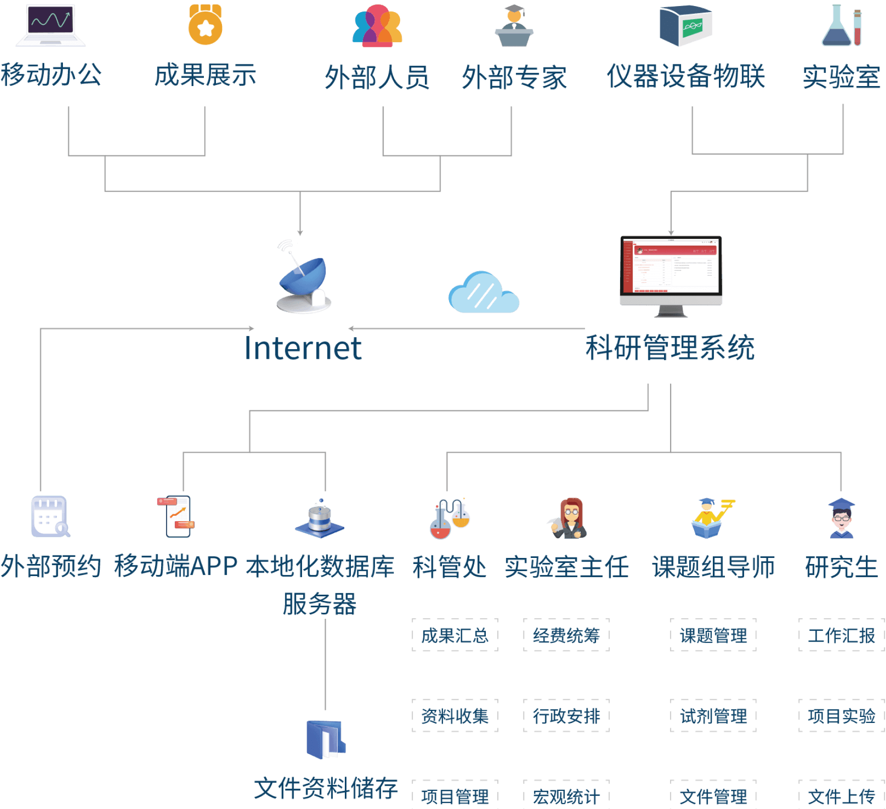 从项目立项到成果上报、从物料采购到经费报账,平台系统支持一站式的实验室管理功能和流程